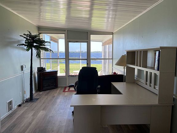Lake Front home! This is a 2 bed 2 bath home listed $59,995 This home has a large Florida room all enclosed heated and cooled, 2 bedroom and 2 full bathrooms. The kitchen is very spacious with lots of counter space and storage. The homes sits on the shores of Lake Henry with beautiful lake views from the screened room and bedroom. Washer and Dryer included, fridge, stove and dishwasher are in great working order. Home sold as is with some furniture. This home is within walking distance of the clubhouse with its resort like pool/Jacuzzi area. Contact us today this home will not last.