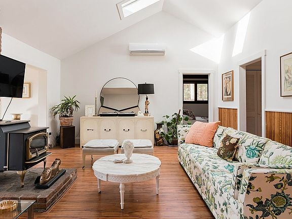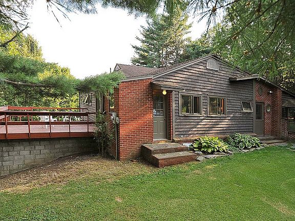 Beautiful, quiet, peaceful mid-century Modern lake house with epic views. Set on two separate parcels approximately 2.5 acres each, totaling over 5 acres, this 2,000sf home boasts 4 bedrooms and 2 baths. Recently renovated inside and out, this home features a master bedroom with delicious views of Twin Island Lake. Ensuite bath with extra large clawfoot tub, honed tile marble shower with extremely stylish custom finishes. Front sitting room / den features floor to ceiling glass doors which slide onto a newly constructed porch with expansive views of the lake, Stissing Mountain, and beautiful woodlands. Large separate living room with pot belly stove, great skylights, and more lake views. Large kitchen with wrap around windows and eat -up counter looking into a separate dining room. Dining room has sliding glass doors onto a second wooden deck with a built-in BBQ, views of the lake, lawn, and woods, and great for entertaining and dinner parties. Over 200 feet of your own lake frontage. Lake is perfectly swimmable right from your own shoreline as well as in one other spot on the southeast side. Enjoy kayakng, paddle-boarding, and boating off your own shore. Store your watercraft n your own waterfront boathouse (could also make a great tiny house, bar, hang out room). Boat house has electric and running water. Other features include maple flooring, mini-split ACs with remote control, and a newly wired heating system set up with NEST for remote control, on demand gas water heater, built-in back-up Onan generator. 700sf unfinished basement great for storage. Fantastic trees, flowers, epic lawn space, beautiful natural light. Home is full of love and great for relaxing and entertaining. Technically two separate parcels, approximately 2.5 acres each. Only being sold together, but you could easily sell the lot with no home on it separately or change the orientation and divide the lots differently. Both lots have their own lakefront rights. Fantastic location with lake and mountain for boating and hiking and climbing. Large rock at north end is dubbed Little Stissing The house has open, spacious layout, lots of sun from the south. Like a private park. For sale by owner. At this time not entertaining offers via buyers broker unless buyer is paying buyer's broker directly. Please email or text from this listing if you have questions. Please do not call.
