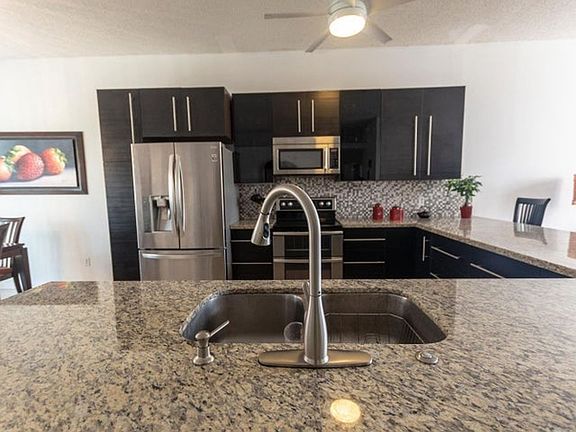 Courtesy of Keller Williams Realty - Well This fully renovated residence features sleek, modern finishes throughout. The spacious, open-concept living area flows seamlessly to a private patio and a beautifully fenced backyard, perfect for relaxing or entertaining. The versatile layout includes three bedrooms, offering flexibility for a home office or guest space. Additional highlights include a large walk-in closet, in-unit washer and dryer, and plenty of natural light. Don't miss the opportunity to make this stunning property your next home. Call today to schedule a private showing!
