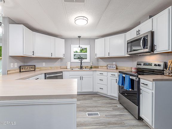 This double-wide home on a permanent foundation has been completely renovated. It offers large bedrooms with walk in closets, an oversized living room with high ceilings, stunning new kitchen with plenty of counter space, a breakfast nook with booth seating, formal dining room, fully renovated bathrooms with shower and tub options, and laundry room that is already equipped with a washer and dryer. The roof, appliances, windows, doors, flooring and much more, have all been recently purchased and replaced June 2023 providing peace of mind for years to come. Enjoy your morning coffee on the freshly stained deck. With fresh paint throughout, the home feels bright and inviting. Reach out to schedule a viewing and embrace the serene beauty of this coastal haven.