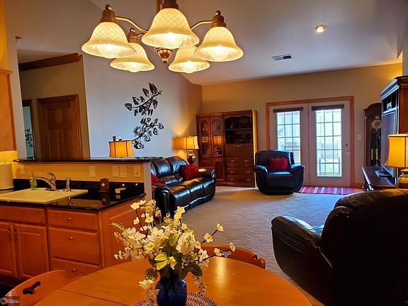 Beautiful West Burlington 2 Bedroom/2 Bath Condo built in 2003 and upgraded with solid wood doors, heated garage, granite counter tops and marble tile, and crown molding. Patio with motorized awning. Open floor plan, very spacious rooms and lots of storage space. Pristine condition. All on one floor living. Appliances stay.