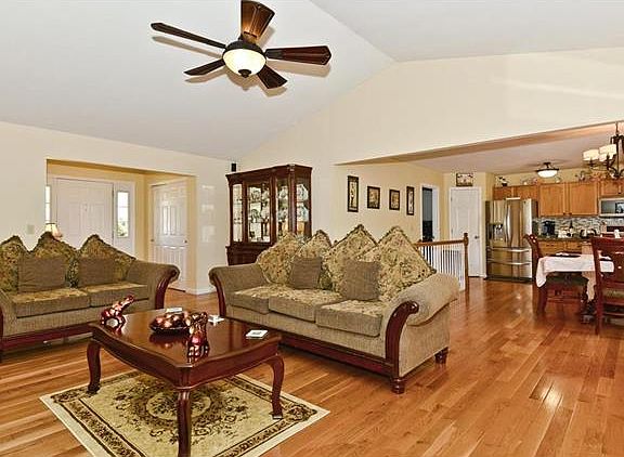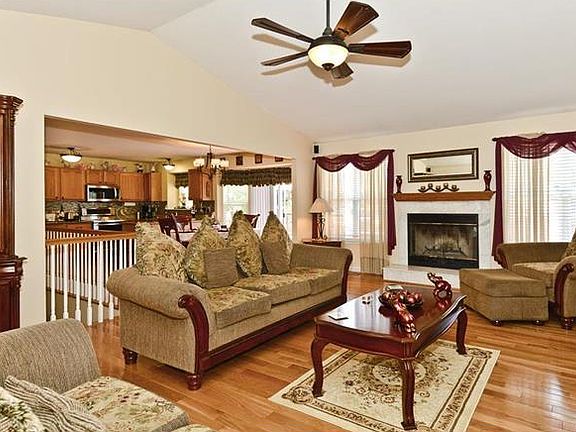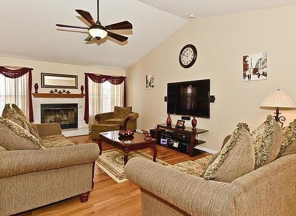 Beautiful ranch home, meticulously maintained. This home has great curb appeal with brick and vinyl exterior, arch shingles and prof looking landscaping. The interior is even better with an open floor plan, gleaming wood floors and updated kitchen. The kitchen features granite counter tops, back splash, stainless steel appliances, upgraded cabinets, walk-in pantry & breakfast bar. The great room has a wood burning fireplace and vaulted ceiling. The main floor master suite opens to the luxury bathroom complete with walk-in closet, dual sinks, plus tub and shower. The LL is great with a bedroom, bathroom and large family rec area with wet bar. The backyard has a large 30 x 14 deck, is fenced & has great landscaping. Other features: finished oversized garage with pulled down ladder for attic access, newer garage door, 6 panel doors, main floor laundry, storm door, etc. (Relo adds required with sale. No contingent on home sale contracts)