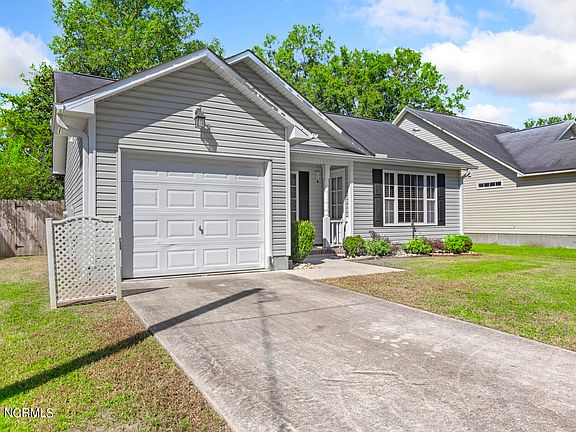 Welcome home to Depot Village! This meticulously maintained 3 bedroom, 2 bath home is located in the heart of Maysville. As you enter the home you will find a gorgeous fireplace in the living room with vaulted ceilings. Throughout the hallway you will find two bedrooms and a full bathroom. At the end of the hallway is the spacious primary bedroom and full primary bathroom. Entire home has brand new LVP installed late 2023! Located off the living room is the kitchen equipped with stainless steel appliances less than 3 years old, a kitchen nook with windows allowing plenty of natural light into the home. Off the kitchen and dining area is sliding glass doors leading to a fenced in backyard and patio, perfect for entertaining on those Carolina summer nights! In the backyard is an 8'x7.5' storage shed on treated wood platform less than one year old. There are also two Saratoga plum trees that produced over 500 plums this season alone! Depot Village is conveniently located off New Bern Hwy and only 20 minutes to New Bern. Schedule a tour today!