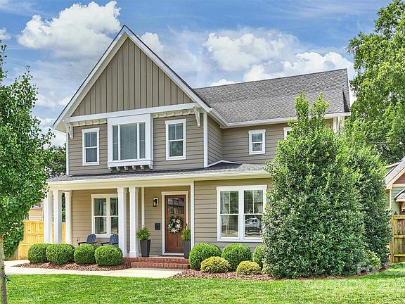 Welcome to this stunning 5-bedroom, 4.5-bath home in the heart of Sedgefield, one of Charlotte’s most sought-after neighborhoods. Built in 2017 and offering over 3,500 square feet, this residence blends modern comfort with timeless design. The first floor features gleaming hardwoods, soaring 10-foot ceilings, and a private guest suite. The chef’s kitchen is a showstopper with white cabinetry, granite countertops, stainless steel appliances, and a stylish tile backsplash. Relax in the spacious living room with exposed beams and a cozy gas fireplace. Upstairs, the expansive primary suite boasts a spa-like en suite bath, while three additional bedrooms—one perfect as a bonus room—offer flexible space for work or play. Enjoy year-round outdoor living on the screened porch and patio. A detached two-car garage completes the package. Don’t miss this exceptional home just minutes from South End and Uptown!