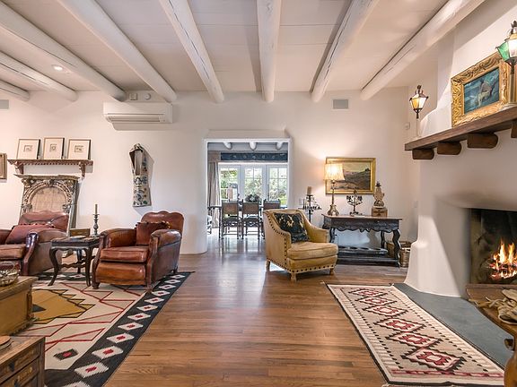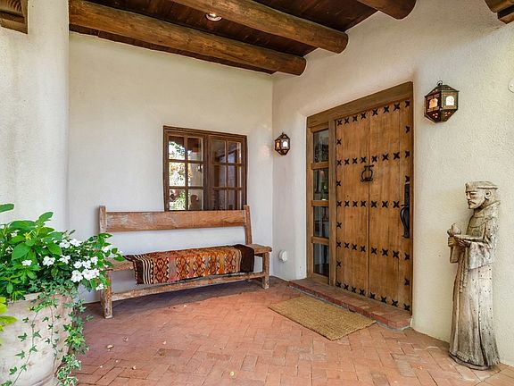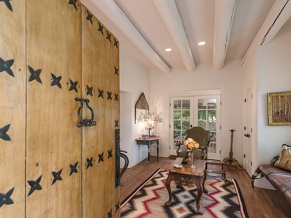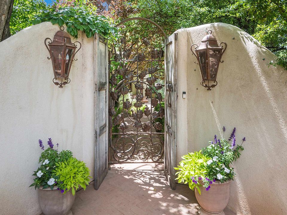 Cast your memory back to a simpler time ...down a shady lane in the historic Eastside to recall the living history and ambiance of an earlier Santa Fe. Here is a rare opportunity to own one of the best Eastside homes to come on the market in the past few years - a quintessential coveted single-level Eastside oasis. Quietly walled and gated on a sleepy street, discover the enclosed lush gardens beautifully landscaped by landscape architect Julia Berman. Enter through an antiqued wrought iron gate onto green grass circled by towering mature trees, roses and a serene fountain. The spectacular grounds continue with the spacious outdoor portal with fireplace which extends the living space to the magic of the gardens; an enchanted pergola laced with grape vines further makes al fresco dining complete. The main house offers two bedrooms, a study, formal dining, spacious living room, open bright kitchen,family room. The beautifully appointed kitchen becomes a focal point with extensive Carrara marble counters and professional appliances. Stroll through the gardens to a one bedroom separate guest house -beautifully appointed with exquisite hard wood floors, designer tiles, a full kitchen, bath -AND enter another cheerful 1 bedroom/1 bath attached casita. A secret door allows access for residents of this exclusive enclave an easy stroll for coffee and the newspaper or to Canyon Road and the Plaza. This unique property is truly one of a kind rarely seen or offered in Santa Fe.