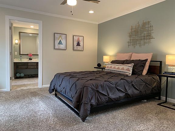 The large primary suite has a private en-suite bathroom and a walk-in closet. Two additional bedrooms are perfect for roommates, guests, or working from home. Updated window treatments have been added throughout the house (not shown in pictures). Washer and dryer are included.