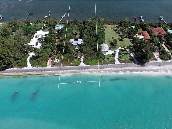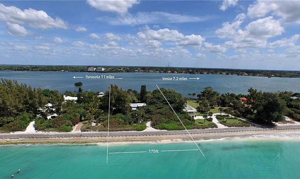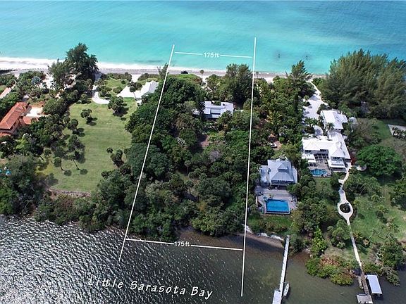 Accepting backup offers. This beautiful 1.5 acre building site on North Casey Key has much to offer. Sunsets and sunrise views. Privacy. The 68,000+ SqFt lot is 450' deep with 175' of private beach on the Gulf of Mexico and 175' on Little Sarasota Bay. The footprint of the original 1916 homestead -- which still stands -- is 4,375 SqFt. There are two additional small footprints where previously there was a detached garage and guest quarters. The land gently slopes to a small beach on the bay where a few pilings of an old dock remain. Bring your vision and architect to this unique old Florida parcel on Casey Key, an exclusive barrier island located 11 miles south of downtown Sarasota and 7 miles north of Venice.