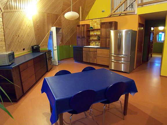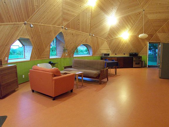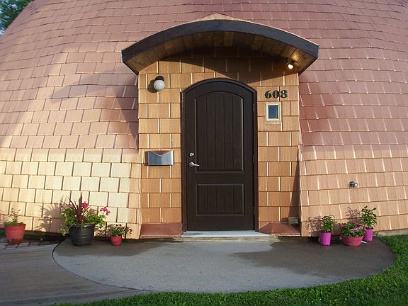 Totally unique, super insulated geodesic dome home in Fairfield, IA. Beautiful expansive open space with stellar loft area. Insulated with R 60 foam in the roof and R 40 in the walls. Solar radiant in-floor heat. Beautiful copper colored Reinke aluminum shakes. Cozy comfort in the winter with thick walls, so no drafts, with minimum of heating or cooling. Note: room sizes irregular and therefore approximate.