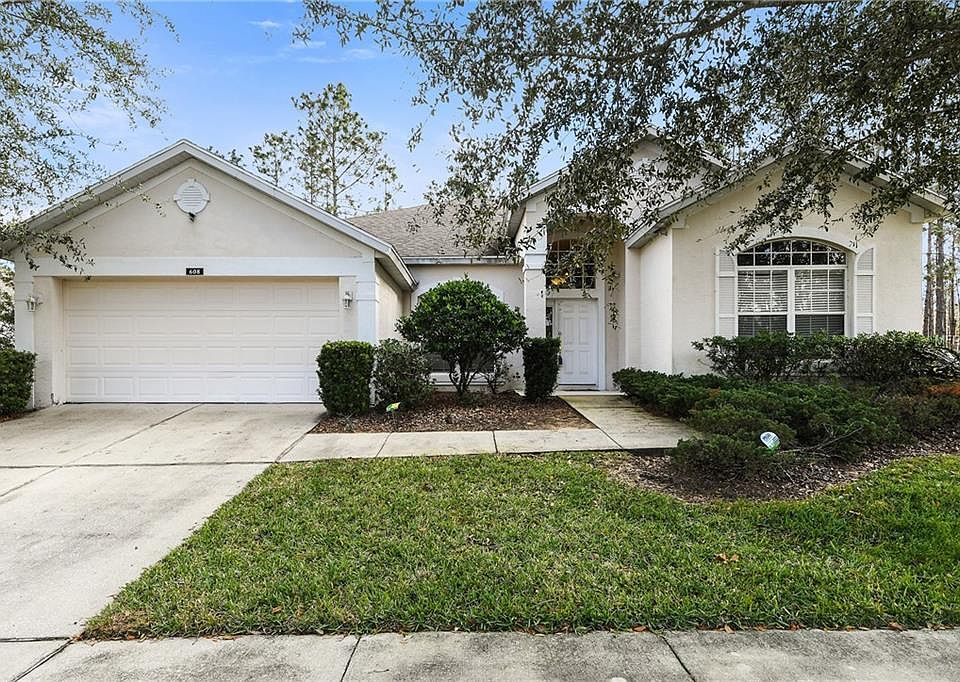 *** NO REAR NEIGHBORS *** WOODED VIEWS ***GOLF COURSE COMMUNITY*** Beautiful 4 Bedroom home with 10' high ceilings and even higher vaulted ceilings in the formal living room. Fully furnished and decorated for short term rental, property management company and bookings in place. Carpet in bedrooms, living and family rooms; Ceramic Tile throughout the rest of the home. Ceiling fans in all bedrooms. Gourmet kitchen is open to the Family Room and the casual dining area, and has 42" cabinets, Corian countertops, and a built-in desk. Split floorplan with 2 bedrooms on one side, 1 bedroom in the front of the house (could be an office), and the huge luxurious master suite with sitting area, his and hers closets, and sliding door to pool area. The beautiful master bathroom has a jetted garden tub, double sinks and shower. Enjoy the large covered patio with a sparkling heated swimming pool (resurfaced fall of 2016) and hot tub/jaccuzzi, all in a very private setting with no rear neighbor and no neighbor on one side! Be a part of the Highlands Reserve resort community, with community pool, tennis court, playground and the magnificent Highlands Reserve Golf Club (18 holes, par 72, 6673 yards length, 118 ft. vertical slopes). Restaurants and shopping all nearby,and only 10-15 minutes to the theme parks!