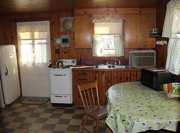 Enjoy a lake front view from this cozy cottage that features knotty pine inside with a gas log fireplace and built in bookcases. Back of home has a screened in porch with new black aluminum screening. New vinyl windows in 2010 and a newer roof. Pier included.