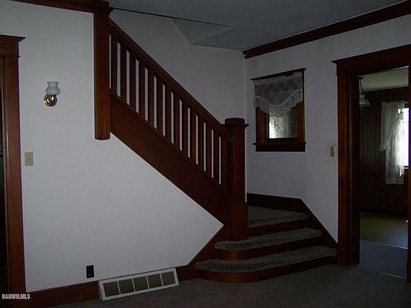 Spacious 2 story home features natural woodwork throughout with open stairway, pocket doors and gas log fireplace on main level. In the upper level hallway there is double door closet with shelves, built in 5 drawer dresser and large closet for storage. There is hardwood under carpet on ML and bedrooms on UL. Kitchen has solid oak cabinets, 1/2 bath off of kitchen, ML laundry with storage and walk in closet in the FR. Off of the master bedroom on the UL is a 3 seasoned room.