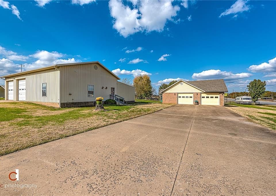 Fantastic Hobby/Business opportunity! 2200 Sq Ft heated and cooled shop with finished-out area for possible retail. Attached garage type room has two 10x10 doors and half bath, 18x30 3-bay outbuilding, and 18x24 carport. Home has 3 bedroom, 2 baths, oversized 2 car garage, vaulted living room w/fireplace and tons of pantry cabinets. Main garage is plumbed for additional gas range for extra cooking space. Nice spacious front and back porches! Situated on 1 acre. Tons of potential! Great location!