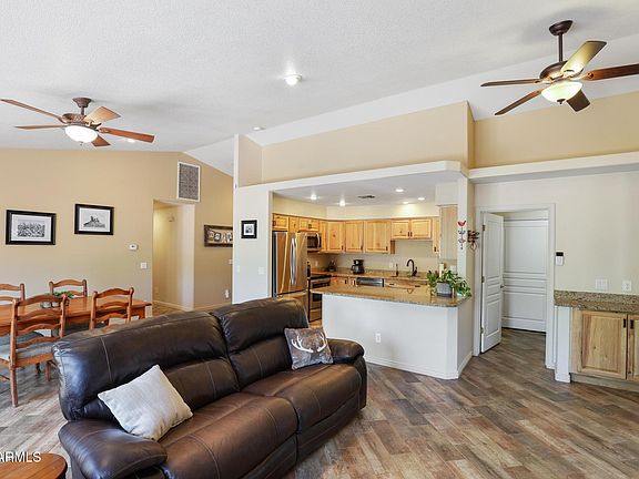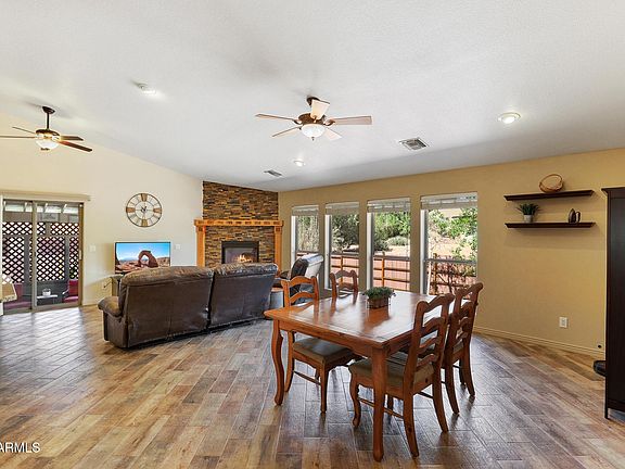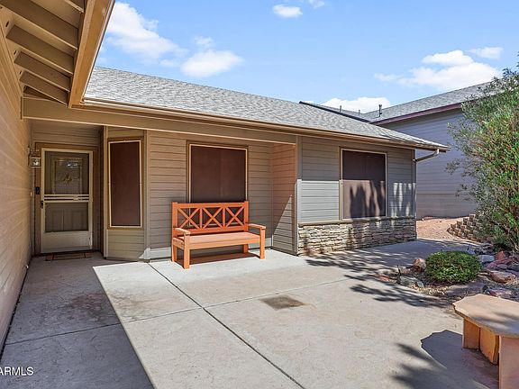 Come check out this rare 3 car garage home in a sought after neighborhood that is move-in ready! New exterior paint and garage doors are just the start to a beautifully maintained home! Parking for all your toys is available with the 3 car garage, and your driveway boasts an extra slab parking spot with room for 4 vehicles. The front courtyard welcomes you with space for seating to enjoy the pleasant mountain weather. Durable wood-grain tile is throughout your living spaces, bringing warmth and functionality to the space. The kitchen has granite countertops, stainless steel appliances, and amazing hickory cabinetry! There are 3 bedrooms and 2 baths, and the master bathroom has dual closets, a soaker tub, and a separate tiled shower. Your backyard has so many options for use! The slider door opens up to a covered patio with trellis work that has a gate separating from the back yard, and a pet door coming from the inside. On the side yard behind that is a turf area with a raised garden bed that has strawberry plants! In the back of the yard are 2 new raised garden beds just waiting to be seeded. The whole yard is fenced with composite fencing, gates on both sides of the house, and access directly to the garage. Outside screens and inside faux wood blinds are on every window for privacy and efficiency. Come live the dream of mountain living with this beautiful home!