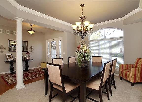 WELCOME HOME! This stunning 1.5 story is loaded with designer amenities and upgrades!Grand floor plan and soaring ceilings galore.Expansive great room with gas fireplace, built in bookcases and floor to ceiling windows. Welcoming chef's kitchen with butterfly center Island, granite counter-tops, designer 42" staggered cabinets, double ovens, large breakfast room crown molding and cozy hearth room with fireplace!Fabulous dinning room with coffered ceiling. Luxury main floor master suite features sitting room, coffered ceiling and spa like bath with jetted tub and separate shower as well as 2 large walk-in closets. Upstairs you will find 3 large bedrooms complete with Jack n Jill baths, bonus room and another full bath.Lower level is finished with 2 extra sleeping rooms, bath, rec room, den/office. Over-sized 3 car garage, ZONED heating and cooling, irrigation system and patio. Subdivision pool and tennis! Upgraded fixtures and lighting throughout this fabulous home! Move in ready!