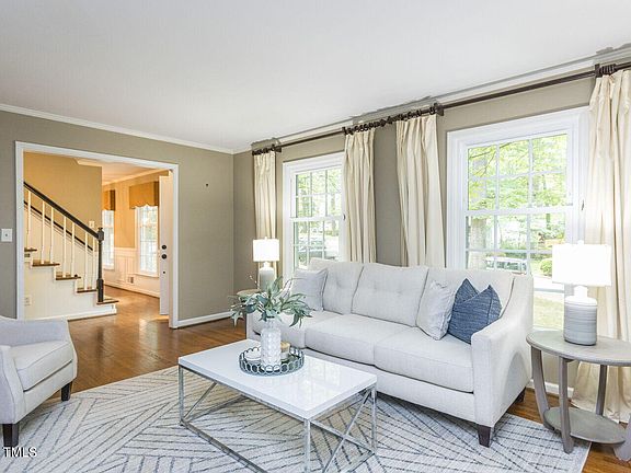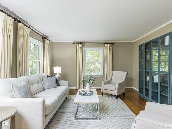 THIS EYE-CATCHING HOME IS LOCATED IN HIGHLY DESIRABLE MIDTOWN! The large living room & stylish dining room offer plenty of space for gatherings & entertaining. Wonderful kitchen with granite counters, farmhouse sink & open shelving flows to cozy family room with gas fireplace. Convenient mud room & laundry off of kitchen! Inviting sunroom that you can enjoy year-round is the place to enjoy a good book or favorite movie! Downstairs bedroom with ensuite bath could be used as office or workout space. Upstairs has a generous size primary bedroom with comfortable sitting area, huge closet & bath with dual vanities & garden tub! Secondary bedroom has ensuite bath & ample closet space! Walk-in storage!! Spend your weekends on the oversized decorative patio surrounded by mature landscaping. Flat backyard is fenced & has helpful storage shed. Half bath added with  permit. Addition of sunroom/part of primary bedroom done years ago - permit unknown. CLOSE TO NORTH HILLS, THE BELTLINE, DOWNTOWN RALEIGH & MORE! WONDERFUL LOCATION + TIMELESS ELEGANCE - DON'T MISS THIS ONE!