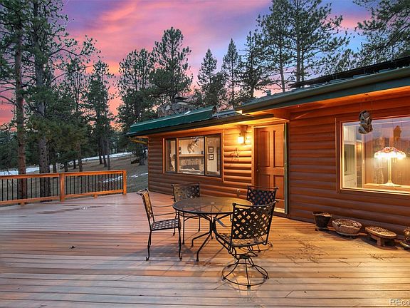 Echos of the past...historic warmth, while being updated. Off of Upper Bear Creek Road in the Circle K Subdivision, this property is positioned on 4.2 gentle acres with extensive tree mitigation and abundant perennial gardens, planted by a master gardener. Rolling mountain views to the East are off of the large deck. Ease of Main floor living with Open floor plan and direct access to the deck and the outdoors. Details of the fireplace in the den will give you pause, as it is a passionate work of art with exquisite Rockwork, nooks, and a built-in custom pine door. The Den flows into the Garden room/office and where the sun warms the space and keeps the plants happy and treat you to the east mountain views. The Living Room, dining and kitchen are integrated and open concept. The kitchen has been updated with Soapstone Counter tops, stain steel appliances and a large island. The Primary bedroom has its own updated bath and a large walk-in closet. The secondary bedroom is right next to the second updated bathroom. Springtime will reveal the wonderful perennial gardens.