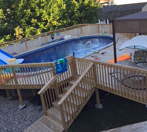 - EXTERIOR FEATURES: Deck, Shed, Covered Front Porch, Patio, Landscaping, Paved Drive, TV Cable, Fence, Above Ground Pool, Fenced Pool Area
