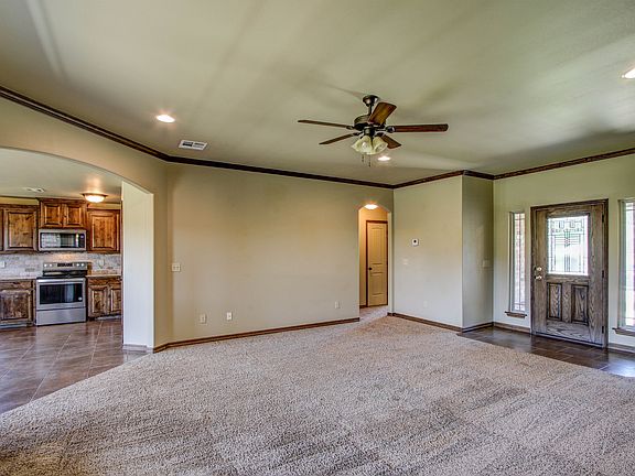 Popular split plan near Lake Keystone and Scissortail Marina. Split plan offers new kitchen appliances (stainless), custom knotty alder cabinets and granite counter-tops thru out. Separate laundry. Large garage with storage space and fully decked attic above. Move in ready! This house is a MUST SEE!