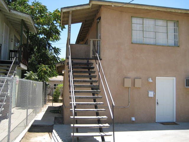 An upstairs 2 bedroom, 1 bath unit with washer and dryer hook-ups, refrigerator and hardwood flooring.