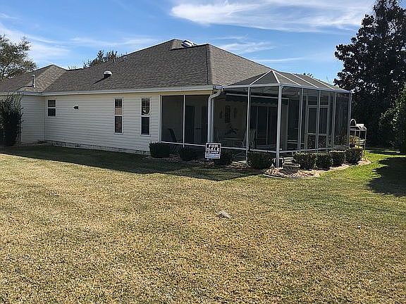 SPECTACULAR 3/2 Expanded Designer Juniper, TURNKEY with a GOLF CART, GOLF COURSE VIEW, FABULOUS OUTDOOR LIVING, Covered Lanai and Birdcage with powered awning, ROOM FOR A POOL. PRIVACY, LANDSCAPING, UPGRADES, Huge Expanded Kitchen, Large Eat In Area, Breakfast Bar, VAULTED CEILING, OPEN FLOOR PLAN, Large Master with En Suite, dual sink, large Walk In Closet, Bedroom 2 with MURPHY BED, Built Ins and Double Closet, Bedroom 3 Double Closet, Large Laundry Room, Garage with electric screen, OVERSIZED GARAGE ROOM FOR TWO CARS AND TWO GOLF CARTS, Large Pantry, Solar Tube, New Roof 2019, Quiet Cul De Sac Lot. Golf Cart 2010 Electric Club Car. Close to Lake Sumter Landing, Laurel Manor Regional Recreation Center, Palmer Legends Country Club and Championship Golf Course, Southern Trace Shopping and Restaurants, Library, Softball Park. PLEASE WATCH OUR VIDEO OF THIS FANTASTIC PROPERTY! Call today for your private or virtual showing.