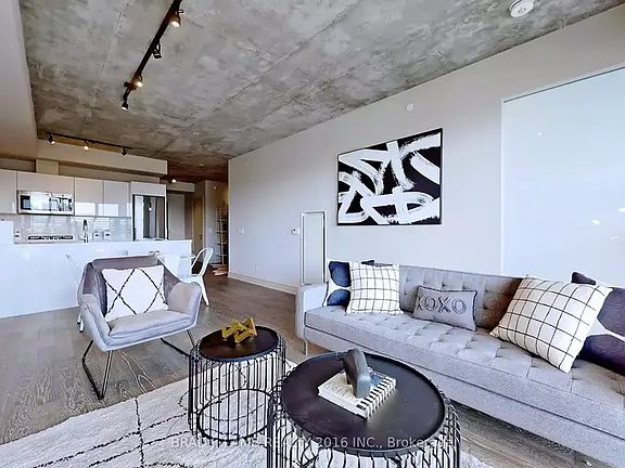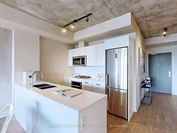 The Harlowe! Modern 1 Bed + Den Loft W/ 9' Exposed Concrete Ceilings, Floor To Ceiling Windows, And Hardwood Floors Throughout. Kitchen Features Modern Euro-Style Cabinets, Stone Counters, Glass Back Splash, Gas Cooking, & Ss Appliances. Bright & Sunny South Exposure On 99 Sqft Balcony! In The Heart Of The Entertainment District; Steps From The Ttc And Countless Restaurants, Coffee Shops & Boutiques Along King And Queen St.
