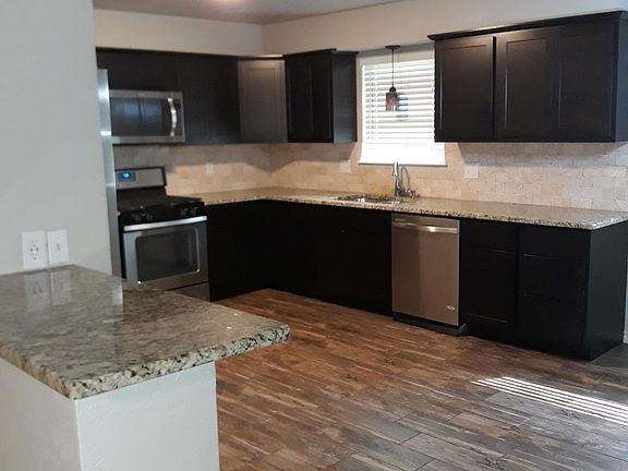 Very nice home with all shaker-style cabinets and granite countertops in kitchen and both baths. Stainless steel appliances, including a stove, dishwasher, microwave and refrigerator. The kitchen also includes a deep sink, faucet, garbage disposal, and a dry-stack tumbled travertine backsplash. The bathroom(s) have all new plumbing fixtures, including a tub, shower, towel bars, toilets, and tile. New texture, interior/exterior paint, interior/exterior doors, gutters, hardware and upscale light fixtures. New hot water tank. New windows and insulation make this home cozy in the Winter and easy to cool. Fenced-in yard on a quiet street. Please note: 1) The garage has been updated since these pics were taken 2) While no longer all new, everything in the home has been replaced within the past few years. Pets are negotiable. No indoor smoking.