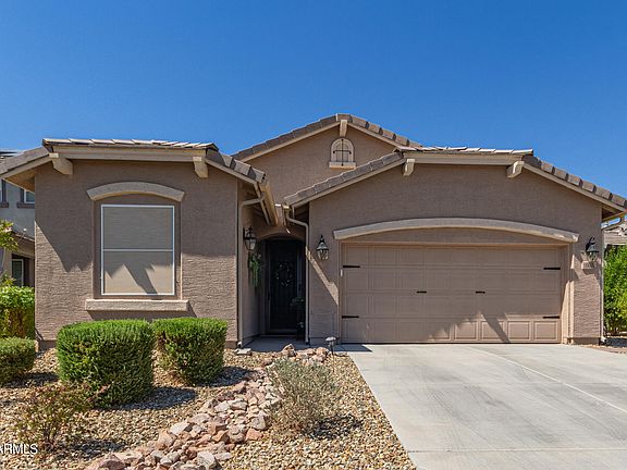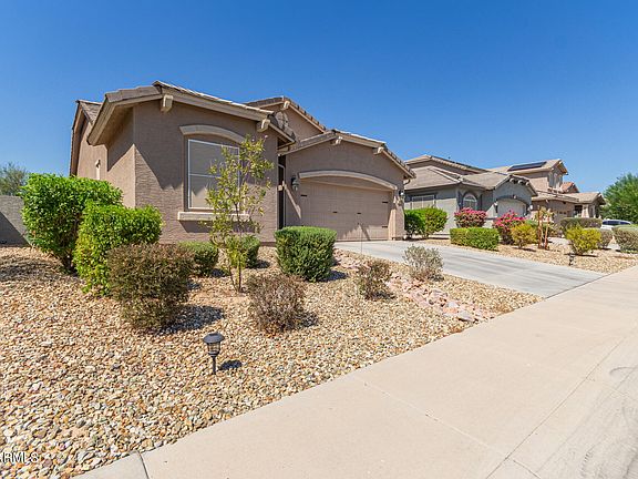 OWNED SOLAR + 25 year maint. warranty! You'll love the captivating open layout enhanced with vaulted ceilings, soothing paint tones, recessed & decorative light fixtures, stylish tile flooring and wired for surround sound. Discover gray SS appliances, granite counters, alluring tile backsplash, and white shaker cabinetry with crown molding in the impeccable kitchen. Retreat to the main suite, offering plush carpet, private bathroom with dual sinks, step-in glass shower, walk-in closet, and outdoor access. The entertainer's backyard invites you to relax and have fun, complete with a covered patio and a refreshing pool ready to enjoy. If all that isn't enough the garage is complete with epoxied floors and tracks for hanging storage along with build in cabinets! This house truly has it all