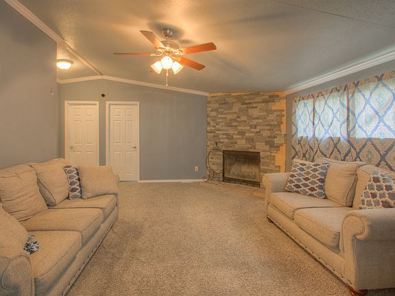 Beautiful remodeled doublewide on corner lot. Newer KitchenAid appliances and the refrigerator stays. Epoxy countertops and beautiful center island. Everything is electric, except the stove has a 30 gallon propane tank for it. Some building materials left to finish small projects. 4 bedrooms, split plan, 2 baths, corner lot with large covered deck on the front. Sold in AS IS condition, but in very good condition.