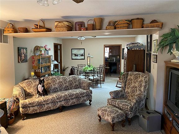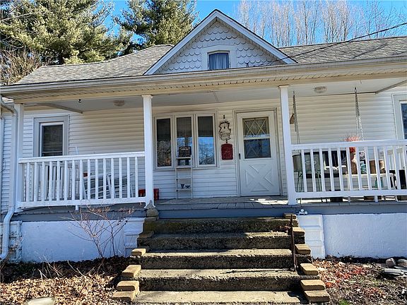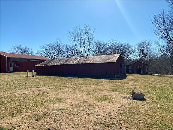 Cross the bridge drive down the long lane to the adorable farm house on top of the hill. The property has 7.3 acres mol. This home has 3 bedrooms, 2 full baths, open floor plan and several out buildings. The home has fish scale siding on gable end, white railing around front porch to add charm. Begin on the front porch perfect for rocking chairs to overlook the land and creek, entry the spacious living room with dining area at one end. There is even a skylight to let natural light in. There 3 bedrooms, the master bedroom has it own private bathroom with tub. The main bath has a pretty ceramic tile shower. Both bathrooms nice size for decorating. The kitchen is adorable with a large snack bar and pretty cabinets. All appliances are included. The kitchen was remodeled with oak cabinets. Leading to the patio outside is a large utility/mud room for additional storage. There is a covered pergola for evening cookouts. The land is rolling with a creek and lined by large woods. The pole barn is 30x50, half has concrete floor, 3 sliders doors and attic in one section for storage. 5 acres was a hay field or perfect building site. There is a partial basement for storage with outside entry. The land has flower beds and brick sidewalks all to add farmhouse charm. City water, city sewer and electric furnished by city of Bethany.(approx $200 month) The is an unique property has charm from the beginning to the back boundary line. (roof 2018) (GFA secured to floor joists) The boundaries are the tree line on 3 sides