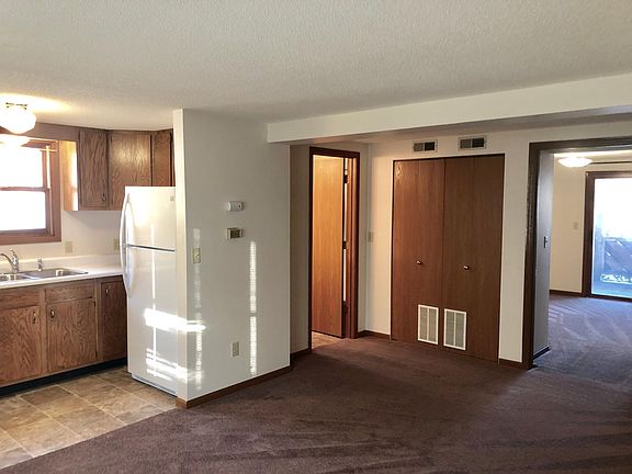 This first floor one bedroom is in a quiet seven unit building. It's nicely appointed with wood finish trim and doors throughout. It s been freshly painted; walls, ceilings and closets. The kitchen features oak cabinets and a window over a newer double sink and newer high rise faucet. The all newer Kenmore appliances; dishwasher, range, hood and fridge match a newer white countertop. All items listed as "newer" are 2 years old. Other amenities include newer vinyl in the kitchen and bath, newer plush carpets in the living room and bedroom, a newer Eljer commode, an acrylic tub/shower, a new 40 gallon water heater, large lighted closets with wire shelving, large private deck with patio door, intercom entry system, teak wood parquet tiles at the entry door, central air and lighted offstreet parking. There's also a coin-op laundry in the basement. Located just four blocks south west of the Capitol building. It's near both St. John s and Memorial hospitals, Washington Park and the Capitol complex. It s $620 per month and you would pay the electric service: approximately $60-120/month. A one-year lease, security deposit, $620 and good income, rental and credit references are required. Sorry with all newer floor coverings no pets are allowed. Owner covers the water, sewer and standard trash removal.