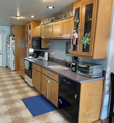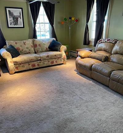 Well maintained 2 story home. Large living room. Additional room off kitchen can be a dining room or family room with Anderson sliding door to fenced backyard and patio area .Nice kitchen with corian counter tops. Large detached 2 car garage with large workbench. 1st floor laundry room with utility sink. Two bedrooms upstairs along with a loft area, previously used as a nursery. 2nd floor has mini split for air conditioning and 2nd heat source. 1st floor has window a/c unit.