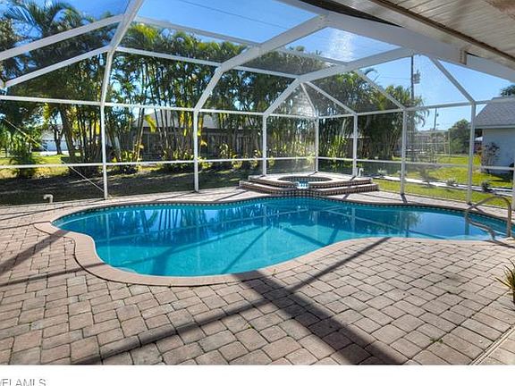 Baywood Construction 4 bedroom (Kristy floorplan), with Custom Concrete Salt Water Pool and Spa with a huge under truss lanai and huge screen cage surrounds a beautiful paver deck with Southern Exposure. *AND* its ELIGABLE for the new "HOMESTYLE rennovation financing". Which means... you can finance Kitchen and bath updates, even NEW IMPACT WINDOWS in your original purchase mortgage. Love the house, love the location, but wish it had your favorite Kitchen cabinets and counters...then NO PROBLEM!!! Already a Very desireable location, south of Veterans in a quiet well manicured neighborhood with immediate access to EVERYTHING. Super convenient access to all of Cape Coral and Fort Myers and the beaches. This Home is a great family or investment property for seasonal guests with its 4 bedrooms and 2 living areas. It has an Open plan, with Cathedral ceilings AND the 4 pluses of a Florida home: Pool bath, split plan, pocket sliders, and walk in closets. All Assessments paid on this property, automatic irrigation system, NEW POOL HEATER AND SALT SYSTEM last year. Come see this rare property with endless potential today! Call for Finance details.