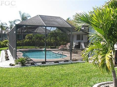 Check out this Wide Long View! Completely Updated, Southern Exposure, Gulf Access, Pool home in Cape Coral FL: nothing to do but Move-in and enjoy this big water view from your lanai or dock. The house: All new Cabinetry, Granite counters, Tile throughout the entire home, top of the line Bosch Appliances, New 2011 Electric Pool heater & pump for the Saltwater pool, New 2012 Water Heater, Pavers on the lanai, Mansard Screen enclosure, & many more details to appreciate. The location and land: Oversized lot site (100x127, enhancing the privacy and view), 100' Wide Canal, Concrete Seawall & Cantilevered Dock, Flood Zone B (flood insurance not required), Beautifully landscaped with many Foxtail & Royal Palms, City Water & Sewer Assessments Paid, and just One Bridge to the big water, traveling down the beautiful San Carlos Canal. Ask your Realtor to set an appointment to see this *Vista Villa* home today and enjoy your expansive views and sunsets tomorrow.