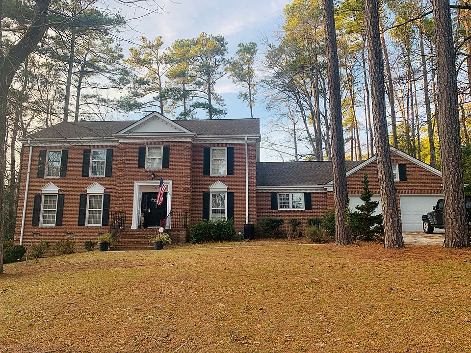 Two-Story brick home on large cul-de-sac lot. Spacious eat-in Kitchen. Formals and Den. Guest Bedroom on first floor. Master Suite and 3 additional Bedrooms on 2nd floor. Sunroom. Deck. Patio. 2 car Garage. Rear Fencing. Plenty of storage. New hardwood flooring on 1st floor and new carpet on 2nd floor. New heating and air systems for each floor. Call or Text (910)978-9699 to schedule showing. Willing to negotiate buyer agent commission.