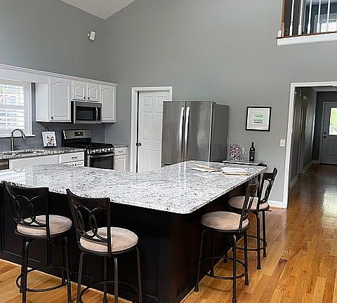 Enjoy open living/kitchen/dining room with vaulted ceilings for indoor entertaining, and a wraparound porch and deck for outdoor relaxation.