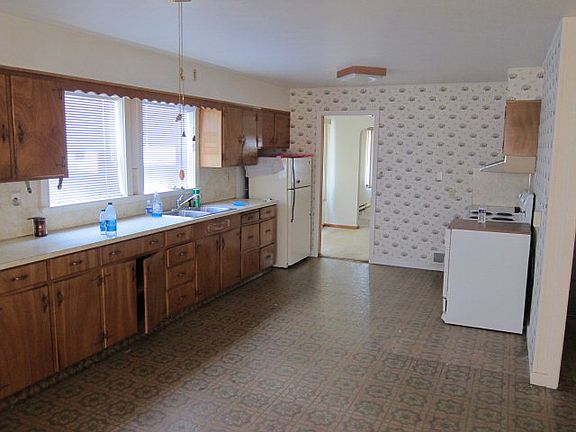 Loads of potential in this spacious home. Like new heat pump with air conditioning. Large lot with underground sprinkler system and mature trees. Detached single car garage with large covered carport. Hardwood flooring under carpet. Large unfinished basement with lots of potential for finished rooms and includes laundry room with washer, dryer and sink. Practically new composition shingle roof. Walking distance to all Salmon amenities. With a little TLC, would make a great starter home. Take a look!