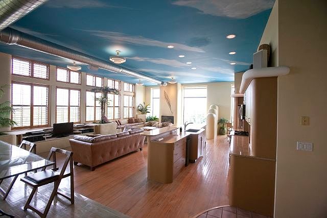 Unique, One of a Kind and Best Views in the City are just a few of the words that describe this 3,000s/f condominium developed by Brad Nicholson in the former Major Hudson Grade School. Amazing entertaining and large open floor plan with original school lights and hardwood floors. Just 5 minutes from Downtown KCMO and great access to I-35 you will enjoy the quiet oasis of 3.5 acres of spacious green space, pool and cabana for entertaining. Includes 2 private garages. Tenant responsible for all utilities except trash and sewer. $40 non-refundable credit application fee.