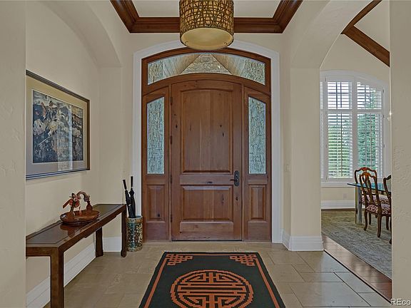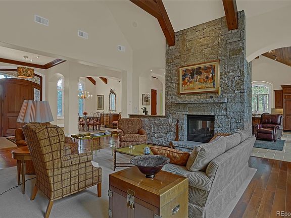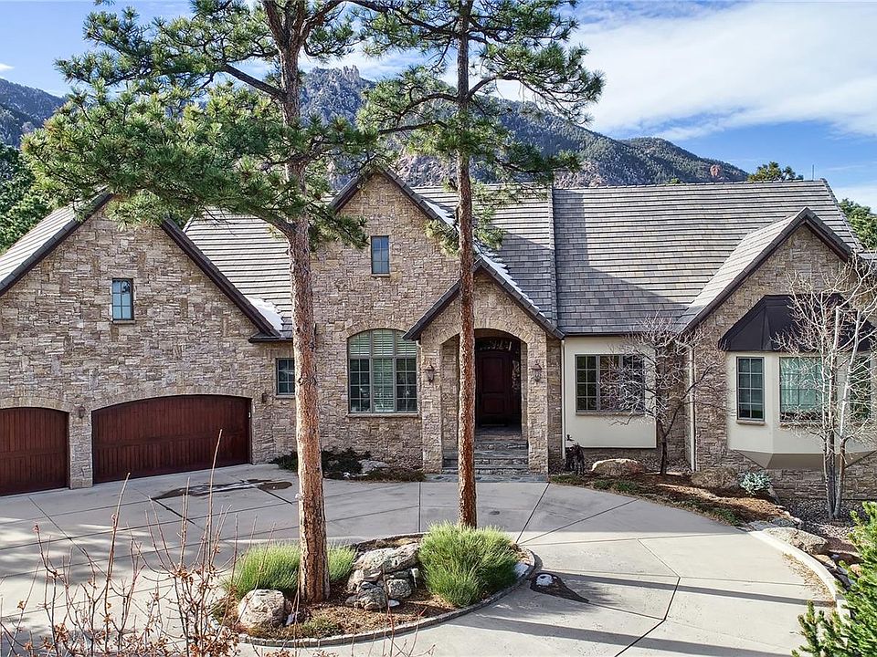 This exceptional custom home encompasses the highest quality throughout and has been impeccably cared for. An open design floorplan features soaring cathedral ceilings, walls of windows capturing breathtaking views of Cheyenne Mountain, the Horns and sparkling city lights. The details of this home are unsurpassed with extensive stonework on exterior and interior, custom designed millwork, rustic cherry beams, coffered and tongue & groove plank ceilings, thick hardwood interior doors, stone and structural arches, numerous built-ins and a wheelchair accessible elevator. The gourmet kitchen is professionally equipped with the finest amenities including SubZero, Thermador, Wolf, Bosch brands, superior venting, 2 stainless sinks with disposals, wine cooler, cherry cabinets, granite countertops, pantry and abundant storage, expansive center island, adjoining spacious eating area, dramatic custom & natural lighting, and adjacent walk-out to the patio and deck.