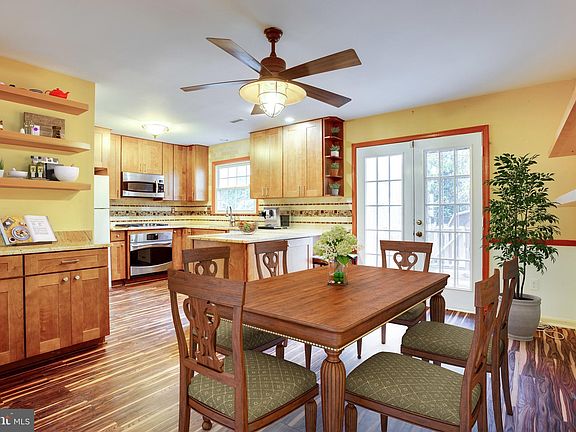 Beautiful 3 BR, 3.5 BA TH backing to woods for privacy in peaceful community & excellent location! Charming front porch, hardwood floors, new roof! Bright open living room & dining room. Sun filled updated kitchen w/granite, SS cooktop, wall oven & breakfast bar opens to deck & fenced yard w/shed. Large MBR with full bath. Finished LL has spacious family room w/wood burning FP, den & full bath!