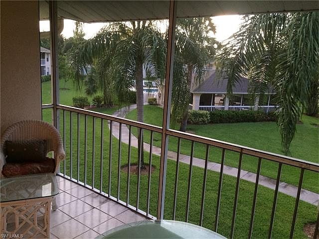 This fully furnished, second floor condo is move in ready with everything you need. Relax on your lanai overlooking the landscaped courtyard and a partial view of the community pool. A large eat-in open kitchen with a breakfast bar and pass through looks out into the dining room and living room. The condo has a nice open feel with vaulted ceilings and plenty of storage in an oversized master bedroom with walk-in closet, an extra large laundry room and an attic crawl space above the unit. This beautifully maintained, family community has scenic walking paths around the lakes, a fishing pier, community pools and clubhouse. It is an easy walk (less than a mile with sidewalks) to the Berkshire Commons Plaza with Publix, Starbucks, Walgreens and restaurants. Convenient to I-75 and only 15 minutes to downtown Naples and beautiful beaches.