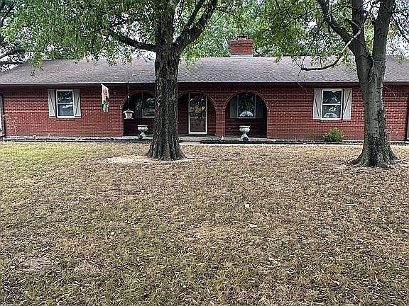 Three bedroom ranch style brick house constructed on 10 acre parcel with two full bathrooms for sale. The property is zoned commercial and has four outdoor buildings. Three of the buildings are square post buildings. Two of the buildings are 120‘ x 40’, each with two overhead doors and one barn type sliding door on each. the third building is 14‘ x 120‘, with two overhead doors, one on each end of the building. The buildings have concrete floors and there is a ten foot concrete apron around the exterior of these buildings. The fourth building is a red iron metal building measuring 40 x 35, with two large sliding doors. This building has a concrete floor with a concrete drive to its entrance. The home has a two car garage and enclosed sunroom with grilling station. The home has been remodeled extensively with new flooring throughout. Bathrooms have been completely remodeled. Master bedroom features an en-suite cultured marble walk-in shower and large walk-in closet. The living room area has fireplace with Insert. The two additional bedrooms are large, the kitchen has custom oak cabinetry, and living area is of the open concept. The home has a New Asphalt Circle Drive, a new sewer line, a new HVAC system with a 4 ton heat pump and new oversized gutters with gutter guards. The property has a 8 x 10 tornado shelter with new steel door. Call for a showing.