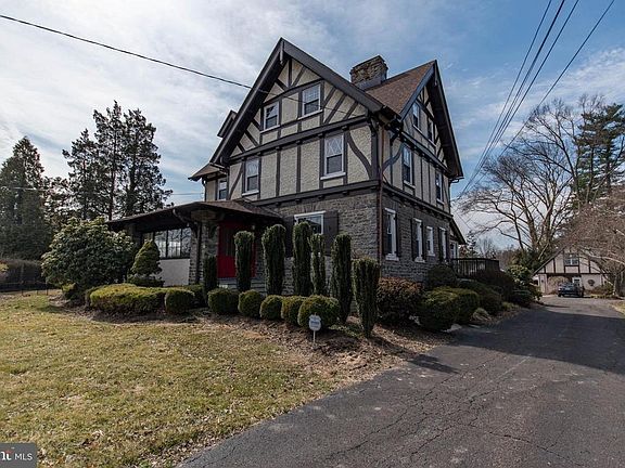 This magnificent 1908 original Tudor style home stands as a Pillar in Langhorne Manor Boro & has a fully approved, wonderfully charming original Carriage House. The property is on over an acre & a half w a park-like setting & in ground pool. The home spectacularly combines old world charm & character w today's modern conveniences you will appreciate. This home offers 5 bedrooms, 3.5 baths, high ceilings, excellent entertaining space, & the interior is full interesting & gorgeous architectural details. The exterior's rich textures of stone, stucco & wood are complimented w stone & brick walkways, brick patio & iron fencing. The main level consists of an office/bonus room w built-in bookshelf just off the entry with exposed original stone wall & cork board floors. The stunning formal living room boasts ceilings w incredible original wood detailing, stained glass windows & original wood parquet floors with inlays leading into the formal dining room. The updated Eat-in Kitchen has newer cabinetry, granite countertops w breakfast bar, ss appliances & opens to the deck & a second staircase leading upstairs. The Huge family room has gorgeous wood flooring, vaulted ceilings, stone fireplace, picture window & a bonus game room w a balcony overlooking the grounds. The 2nd level has 3 bedrooms, a full bath & a laundry room w cedar panels. 3rd level has 2 nice bedrooms & a full bath. The attached 2 car garage has access to a private screened porch w BBQ & leads out to a charming brick patio. The carriage Home is rented to a long term tenant & is absolutely adorable w an updated eat-in kitchen, 1 bedroom, 1 bath & a private yard & driveway. This home is a 1 of a kind Gem! Walking distance to train station.