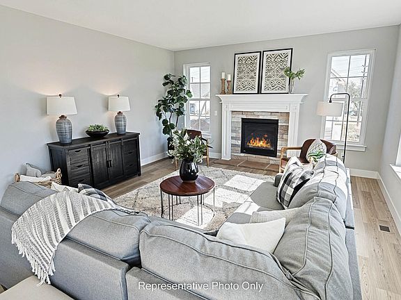 This craftsman style, 2-story home features 9’ ceilings on the first floor, a 2-car garage with an additional storage area, and a mudroom entry complete with built-in lockers and bench. Stylish vinyl plank flooring flows throughout the main living areas. The foyer is flanked by a carpeted flex space to the left and to the right a dining room with tray ceiling detail and a butler’s pantry that leads to the kitchen. The kitchen is well-appointed with stainless steel appliances, quartz countertops with tile backsplash, and large center island. Adjacent to the kitchen is a hearth room and a breakfast area with access to the rear deck. The spacious family room is warmed by a gas fireplace with stone and shiplap surround. The owner’s suite on the second floor boasts two expansive closets and a private bathroom with double bowl vanity, tile shower, and freestanding tub. Three additional bedrooms, a full bathroom, laundry room and rec room are also on the second floor.