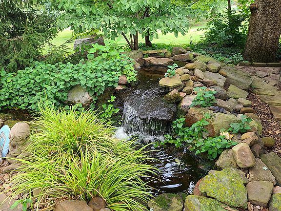 ABSOLUTELY STUNNING quality built all brick home in a fantastic neighborhood! This beautiful home sits on almost two and a half acres and features large open rooms, formal living/dining room, hardwood floors, 4 bedrooms, 4.5 baths, a gorgeous master suite, plantation shutters, crown molding, sunroom, large utility room, unfinished basement area, 3 car garage, 21 x 11 studio with full bathroom and a backyard like you have never seen! Sit in the private courtyard and listen to the sounds of the water running to the coy pond while you relax in the beautifully landscaped surroundings.