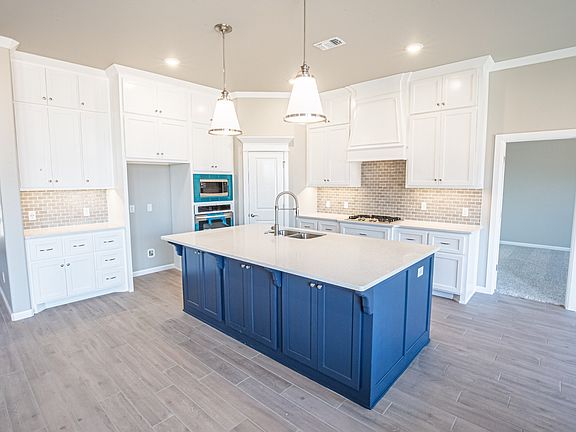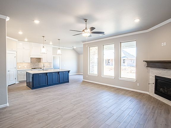 Experience the true Small Town Feel of Yukon in Frisco Ridge! Tucked away in this beautiful community, this Hazel Bonus Room - 5 Bedroom has everything you could possibly want! From the HUGE master closet with utility room access to the grand kitchen with an abundance of storage, this beautiful home has SO much to offer. Home has 2,743 Sq Ft of total living space, which includes 2,530 Sq Ft of indoor living space and 215 Sq Ft of outdoor living space. This beautiful home offers 5 bedrooms, 3 full bathrooms, and 3 car garage with storm shelter installed. Host the football games this fall on this covered back patio that has a fireplace, gas line, and cable hookups ready to go! The main flooring is a gorgeous wood look tile. The beautiful living area has a corner gas fireplace with stack stone surround, large windows that let in an abundance of natural light, and barndoor that secludes the bedrooms from the rest of the home! The beautiful kitchen is opened to the living area and has cabinets to the ceiling, backsplash, 3cm granite countertops, farm sink, and stainless steel appliances. Master bedroom suite has a boxed ceiling with beautiful crown molding, dual vanities, Jetta Whirlpool tub, a large walk in shower and master closet with access to the utility room. This home includes Tabertech Smart Home technology, whole home air purification, Rinnai Tankless Heater, R-44 insualtion and solarboards making it more energy efficient.