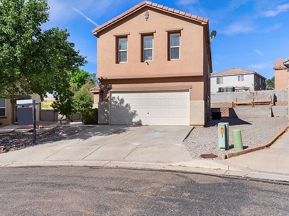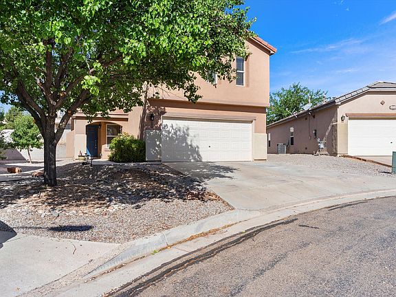 Prime spot located close to Intel in the highly desirable gated community of Chamisa Greens. Situated on a .24-acre lot tucked into the back of a cul-de-sac. The versatile 2,594 sq. ft. floor plan includes a downstairs office which could be a 5th bedroom or hobby room. The sizable 11x20 loft upstairs provides for added living space and overlooks the Sandia Mountains. A lovely master suite with a walk-in closet, the master bath has dual vanity/garden tub/shower. The spacious plan features a beautiful stone fireplace, dining room, and a kitchen with a large pantry and island. The large, covered patio will entice family & friends to enjoy the outdoor living space. Paid off solar keeps utility costs low at $9/monthly. Perfectly suited for every day living but also ready for entertaining.