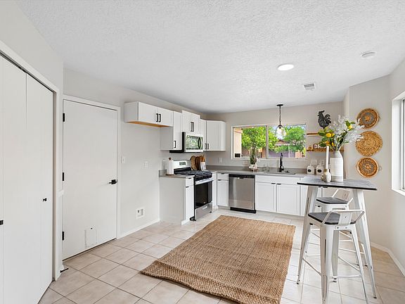 Welcome to your future home in Northern Meadows, Rio Rancho! This beautiful 3-bedroom, 2-bathroom house is MOVE-IN READY and maintained with care. The Southwest-landscaped front yard offers low-maintenance beauty, while the bright interior, wood look flooring and a tile kitchen, a welcoming and stylish atmosphere is ensured. The kitchen is compact yet thoughtfully designed, featuring all-white cabinets that add a touch of modern elegance.Extra large backyard with small covered patio, ready for your next family BBQ! Enjoy nearby recreation, parks, and the Santa Ana Star Arena for endless entertainment opportunities! This one will go fast, call today!