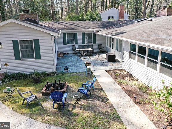 Spacious 4BR/3.5BA, 3692sf home on a .74 acre lot in Salisbury's sought-after Hunting Park community - minutes to Downtown, but tucked away down gently-curving, tree-lined streets off Riverside Drive. Lovingly updated by the current owners - this welcoming home features a flexible floorplan - with large rooms and multiple spaces to gather. Updated kitchen w/granite counters, double wall ovens, breakfast bar - opens into the formal dining room w/wood floor. Living room w/brick-surround pellet-stove, laminate-wood flooring, wall of windows and two ceiling fans. Step down into the HUGE family room w/ recessed lighting and flagstone floor. Expansive primary suite -- gorgeous bedroom w/vaulted ceilings, LVP floors, walk-in cedar closet w/built in shelving, brick-surround fireplace -- private flex room w/vaulted ceiling, LVP flooring, fireplace, would make a great office or craft room, exercise room -- full bath w/jetted tub, corner step-in tiled shower, oversized double-sink vanity, ceramic tile floors. Bedroom 2 w/LVP flooring, en-suite full bath. Bedroom 3 w/hardwood floors, en-suite half bath. Bedroom 4 w/hardwood floors. A 3rd full bath and laundry room complete the home's interior. Large unfinished basement, great for tons of storage. Entertain or relax on the large flagstone patio in your fenced backyard. Plenty of room for your guests to park on the paved circular driveway. This home has so much to offer to a new owner - call today to schedule your private tour! Sizes, taxes approximate.