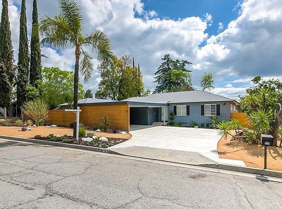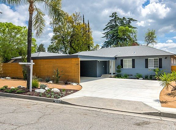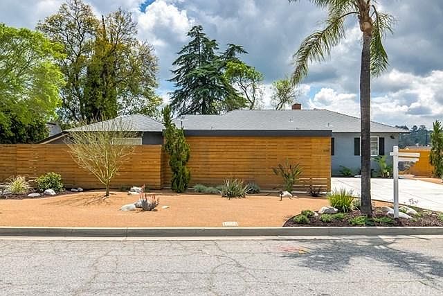Desert eclectic ranch home remodel in the desirable Redlands hills. Just blocks from the prestigious Redlands Country Club. There are wood floors throughout the three bedroom two bath house and tile in the bathrooms. The galley kitchen has a farmhouse sink, Silestone counter tops and soft close cabinets and drawers. Appliances are stainless steel. Kitchen nook overlooks the backyard with wonderful old growth pine tree and Cypress. Honeysuckle brings the hummingbirds. Living room has extended sliding glass doors/windows to backyard patio and yard. There is a wood burning fireplace and build-in bookshelf. The 3 bedrooms are nice sized one with builtins. The baths have both been remodeled in the charming character of this mid century home. Just off one bedroom is a retreat extremely private and beautifully done. The garage had been converted to a wonderful space approximately 400 square foot studio, perfect for an office, studio, game room, exercise room or just a great place to hang out. The landscaping is desert scape meet modern with a low maintenance appeal. It has fabulous room for an RV, boat, toys, etc. The two car carport has a brand-new concrete driveway. New fencing in several areas of the property. Large covered patio, new HVAC system. This truly charming cottage has even lovingly restored.