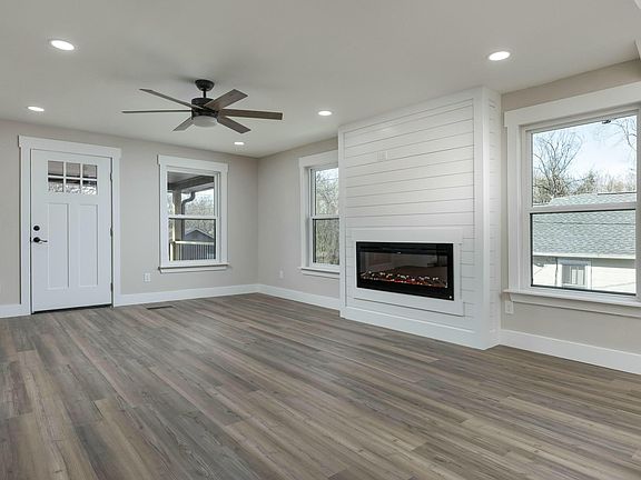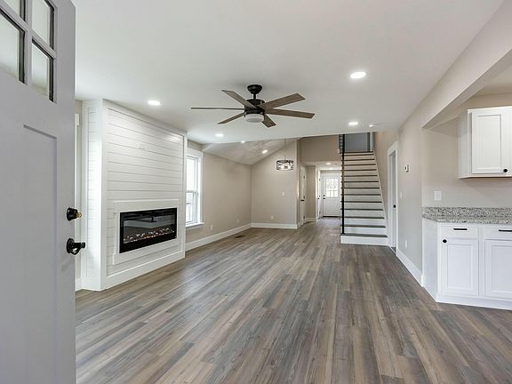 An inviting large, open living area greets you upon entry, anchored by a contemporary fireplace that adds both warmth and style. The living room flows seamlessly into the wide-open kitchen, equipped with abundant counter space and an extremely large pantry. Step out front to enjoy your morning coffee on the cute, covered porch, or retreat to the backyard—fully fenced and level—for an afternoon under your very own pear tree, with a stately pecan tree enhancing the front yard's curb appeal.